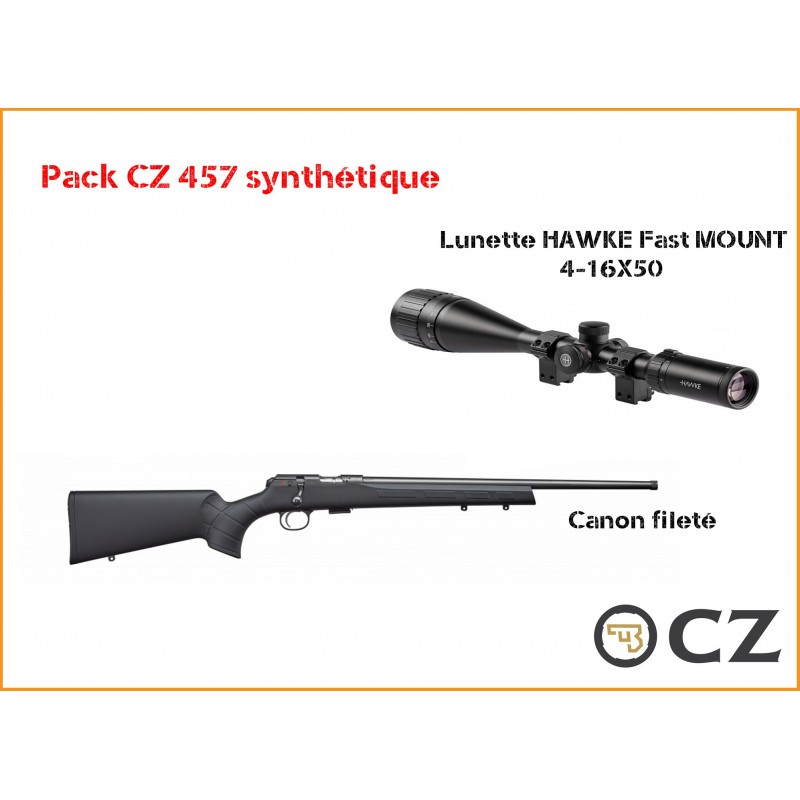 Pack CZ 457 synthétique fileté + HAWKE 4-16X50