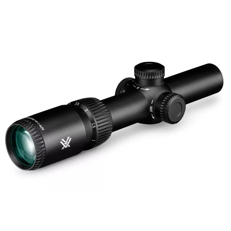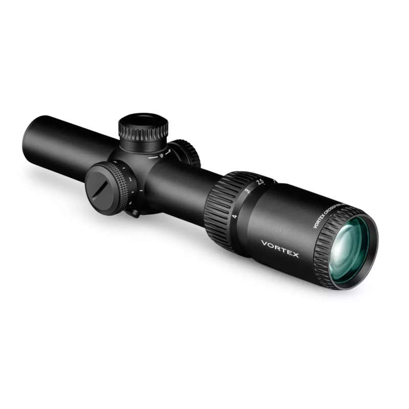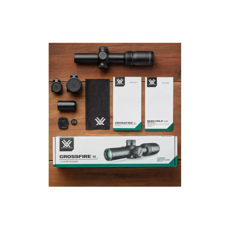 La lunette de visée VORTEX Crossfire HD 1‑4×24 avec réticule Dead‑Hold 2A BDC SFP (MOA) est conçue pour la chasse et le tir dynamique.