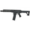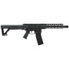Cette carabine tactique est polyvalente grâce à ses multiples options d'alimentation et d'énergie. Il est facile de passer du mode MagFed à l'alimentation par Hopper. Elle peut être alimentée par une capsule CO2 88g (standard), 2 x CO2 12g (en option avec l'adaptateur Quick-Piercing) ou une bouteille HPA 200 ml (en option). Son régulateur garantit une vélocité constante, et une soupape de décharge facilite l'entretien. Le canon fileté Cocker permet l'installation de canons de personnalisation, et la poignée style AR assure une compatibilité avec de nombreux accessoires. Equipé d'un filetage M22x1.5 pour X-Tracer, d'un système M-LOK, d'un rail Picatinny et d'une interface QD, elle offre de nombreuses possibilités de configuration. Semi-automatique uniquement.