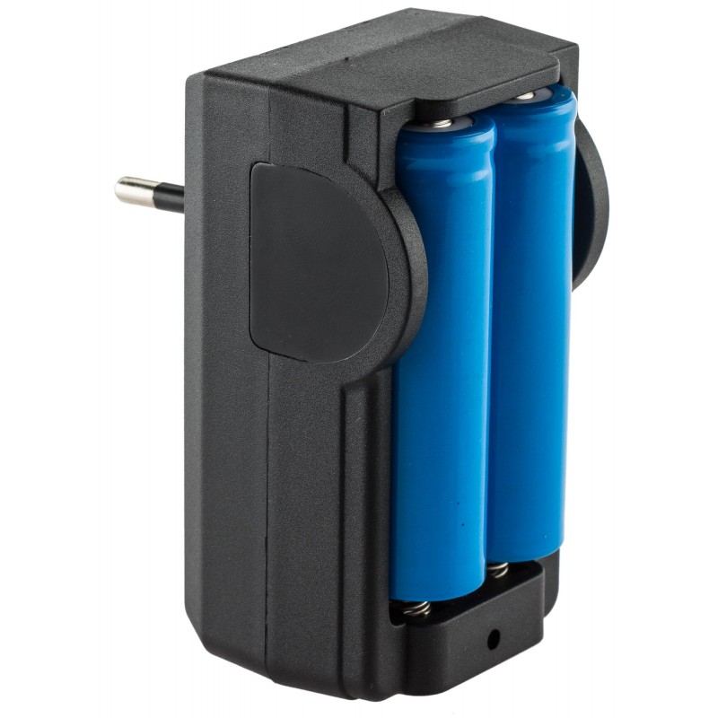 Livrée avec 2 accus 18650 rechargeables et un chargeur secteur.
