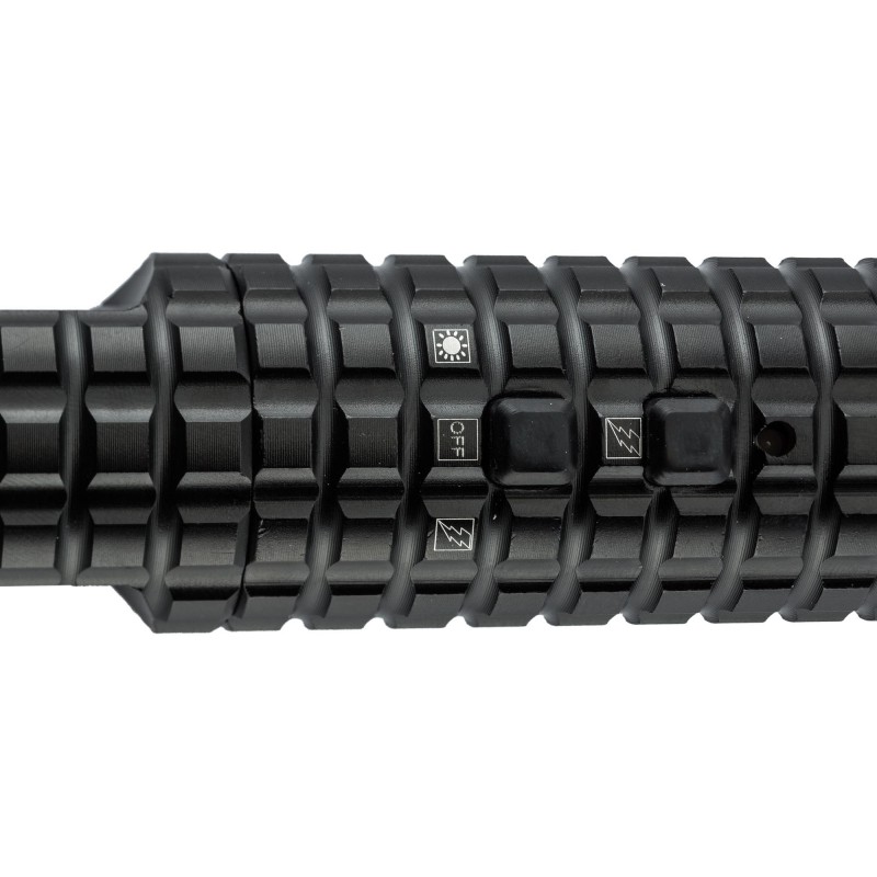 Permet de tenir un agresseur à distance grâce à son crépitement très impressionnant et à sa longueur de 35 cm et de le neutraliser très efficacement grâce à sa fonction électrochoc de 10 000 000 de volts qui agira même à travers les vêtements.
