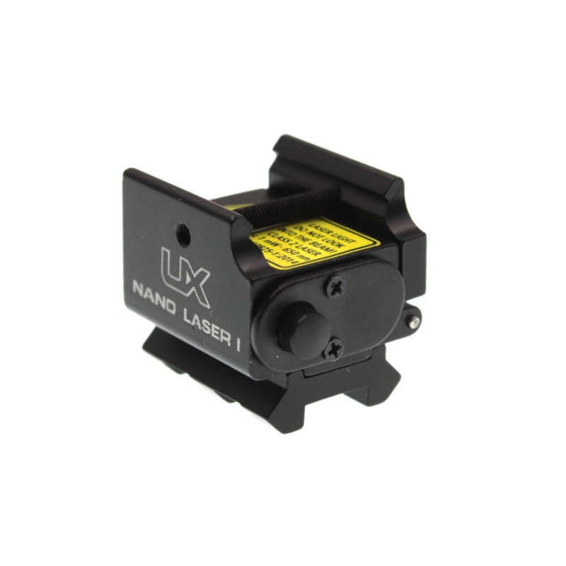 Nano laser de classe II (<1mW - 650 nm) fabriqué par Umarex. Réglable en hauteur et en dérive, il dispose d'un rail Picatinny. Fourni avec 3 piles AG5 ainsi que de 3 clefs Allen. Ce laser compact en aluminium renforcé permettra d'accentuer votre précision lors de vos parties.