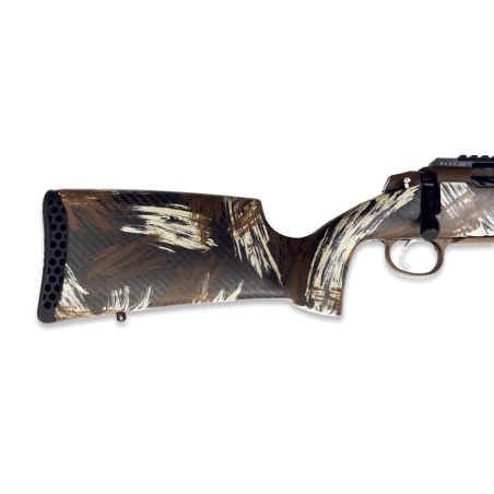 La crosse Alpine™ CT en carbone constitue l’un des points forts de ce modèle. Elle assure une rigidité remarquable tout en réduisant considérablement le poids total de l’arme, ce qui la rend idéale pour les longues approches, la chasse en montagne ou les déplacements prolongés. Sa conception ergonomique garantit une prise en main stable et naturelle, favorisant un alignement rapide et précis avec l’optique.