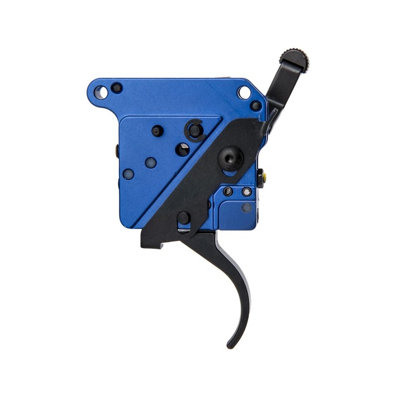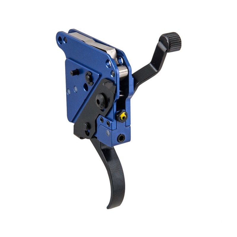 Sécurité latérale de blocage du déclencheur à deux positions. Gâchette entièrement réglable pour l'engagement du cran, le sur-travel et le poids de traction de 226 grammes à 1130 grammes . Disponible en bleu (noir) et en nickel plaqué. Crans en nickel Teflon pour garantir une durée de vie de service fiable.