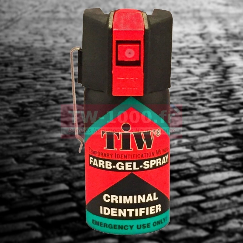 Bombe de marquage TIW Farb-Gel-Spray Criminal Identifier au colorant rouge indélébile en 40 ml pour l'auto-défense.