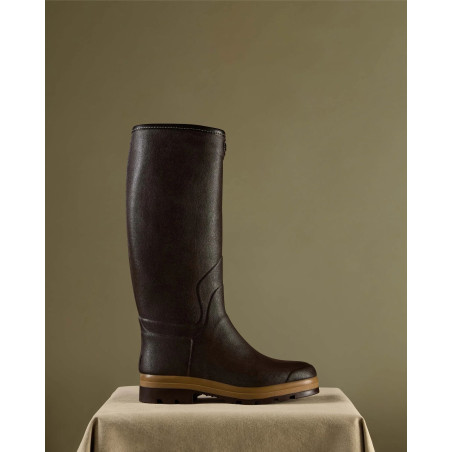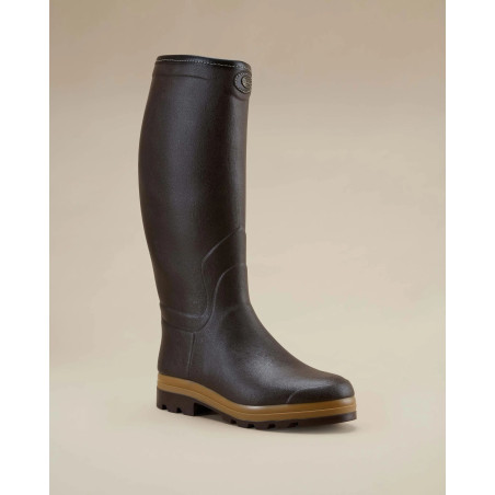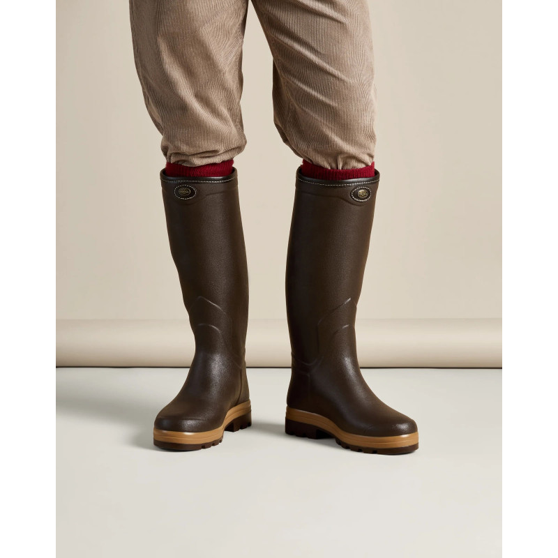 Le coloris classique et élégant, souvent disponible en brun ou vert kaki, s’adapte aussi bien aux environnements naturels qu’aux contextes professionnels, offrant un style sobre mais raffiné. Les détails de finition, la texture du cuir et la précision du moulage du caoutchouc témoignent du savoir-faire artisanal de Le Chameau, reconnu pour ses bottes d’exception depuis plusieurs générations.