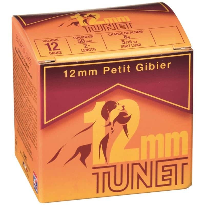 Cartouches calibre 12 mm plombs au choix de la marque TUNET. Conditionnées en boite de 25 cartouches