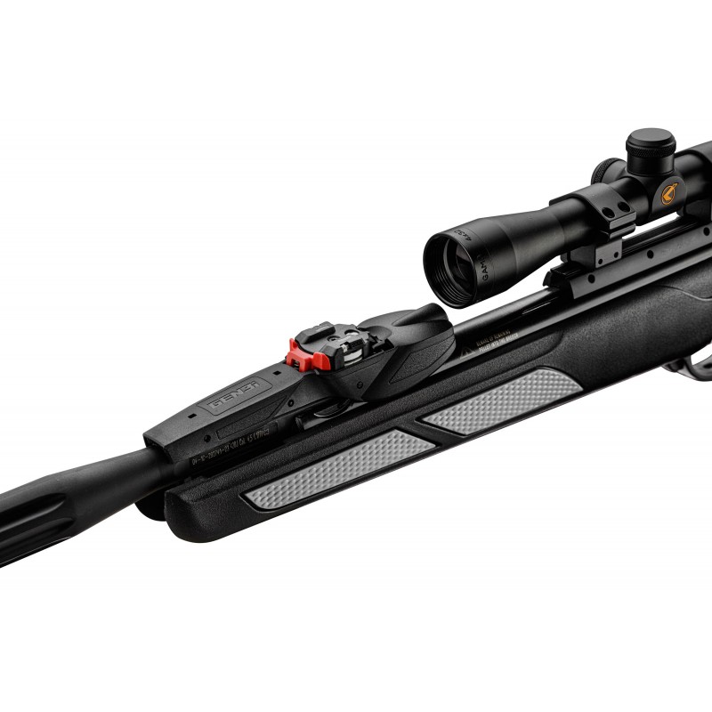 Cette carabine à air comprimé est équipée d’une nouvelle crosse qui combine une conception de crosse de chasse traditionnelle avec des matériaux en nylon rempli de verre de qualité automobile. L’avant-bras, la poignée et la joue sont texturés et antidérapants.