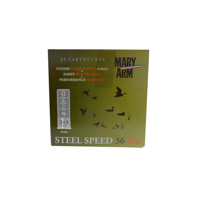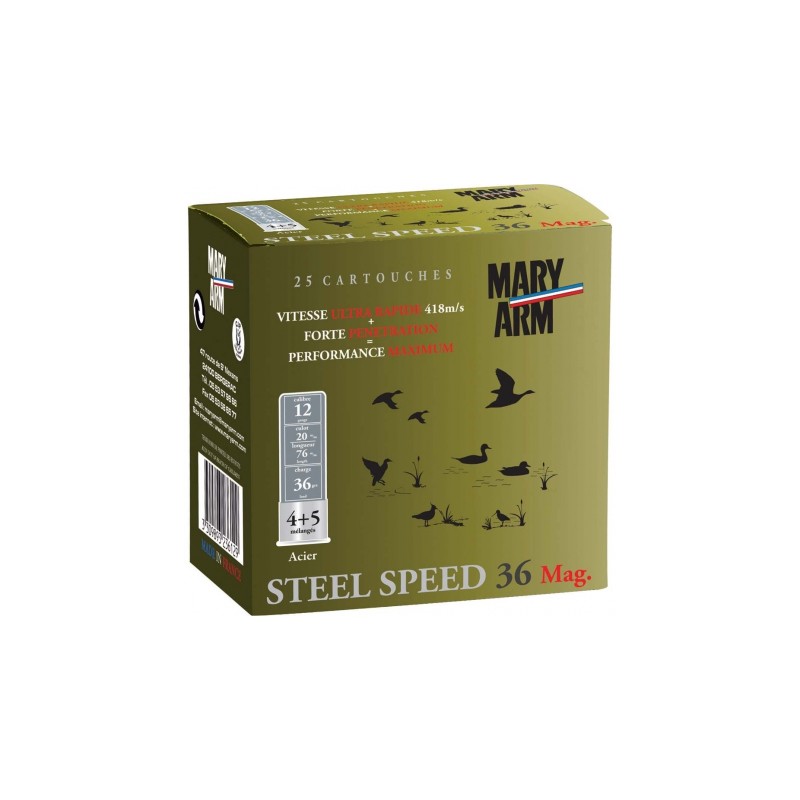 Boîte de 25 cartouches Mary Arm Steel Speed 36 Magnum (grenaille acier)