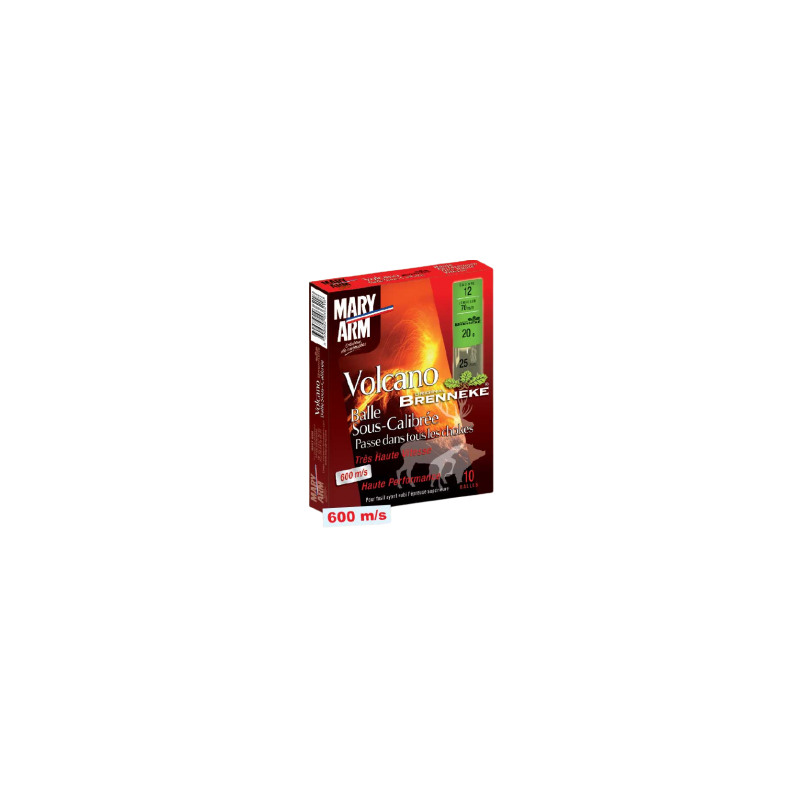 La balle Volcano Brenneke est une balle sous calibrée contenue dans une bourre jupe spécifique, qui peut être tirée dans tous les chokes.