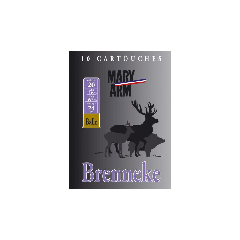 La cartouche Mary Arm Brenneke Cal 20 24g est spécialement conçue pour la chasse en battue, idéale pour le chevreuil et le sanglier. Avec son calibre 20 et son poids de 24g, elle offre une grande efficacité et une portée suffisante pour la chasse en battue