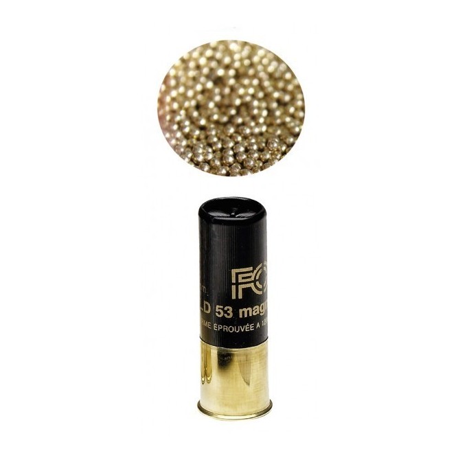 Conçues pour les fusils de calibre 12/76, les cartouches à plomb doré FOB Gold 53 Magnum s’utilisent à la chasse au petit gibier, à poils ou à plumes.