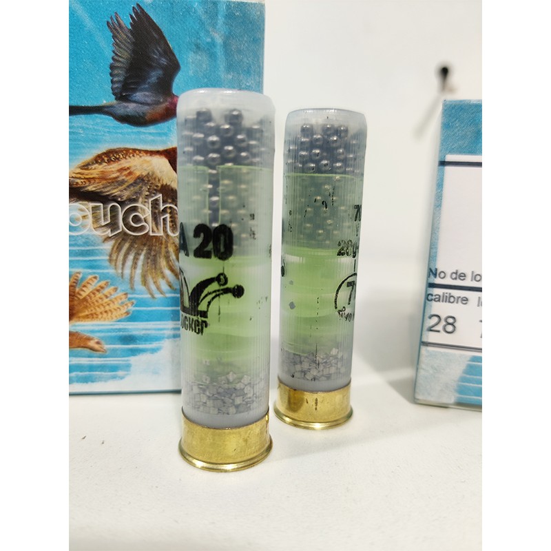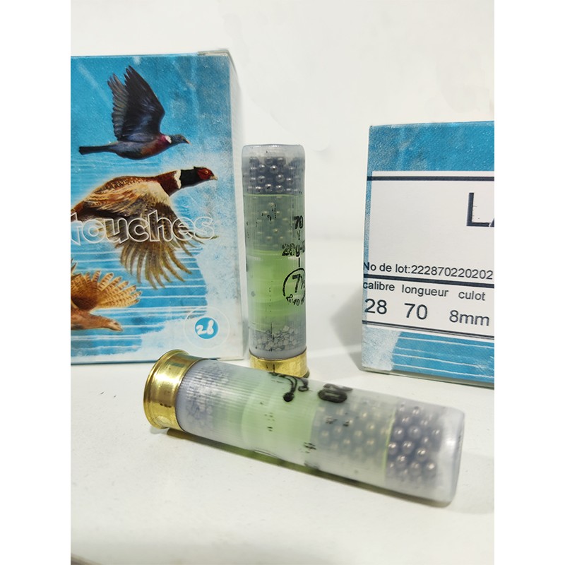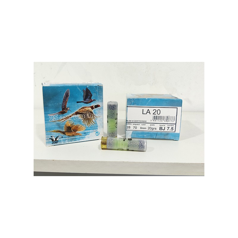 Conditionnée en boite de 25 cartouches, les munitions sont chargées de 20g de plombs de 7,5.