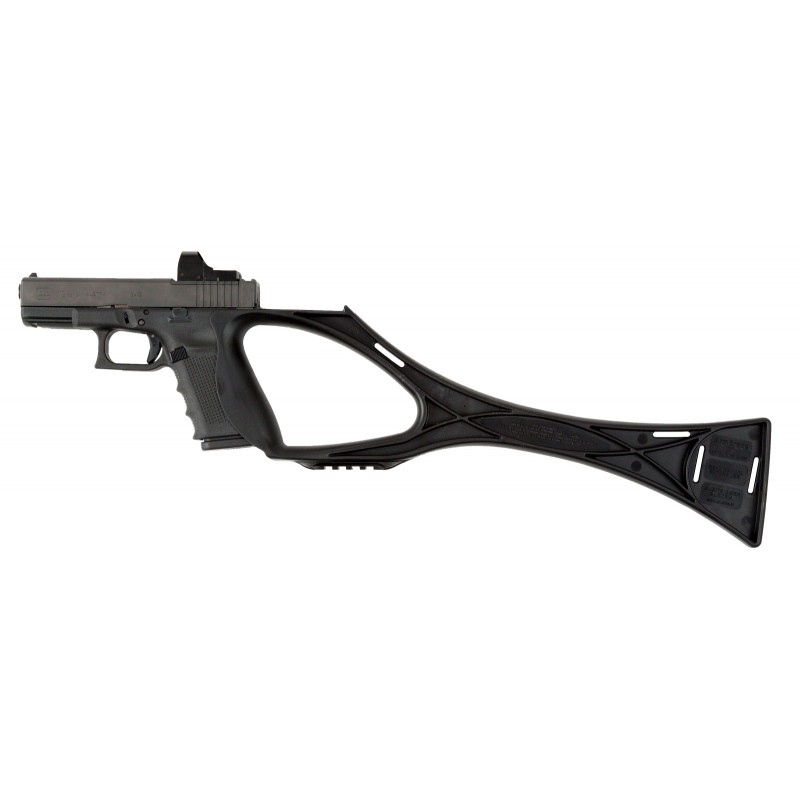 Cette crosse se clips sur le dos de crosse d'un pistolet Glock pour le transformer en arme d'épaule.
