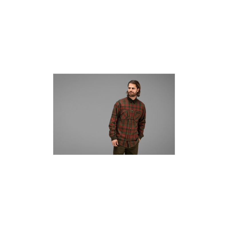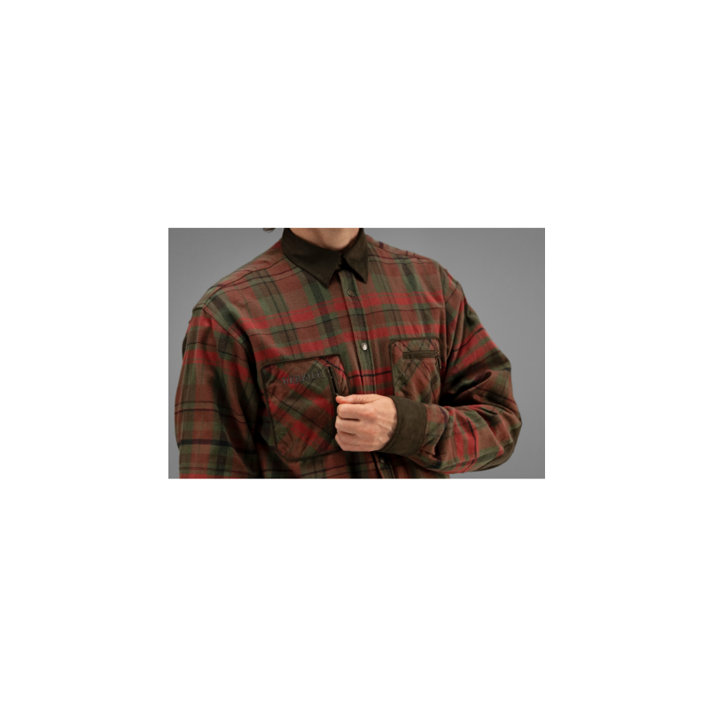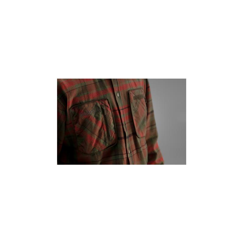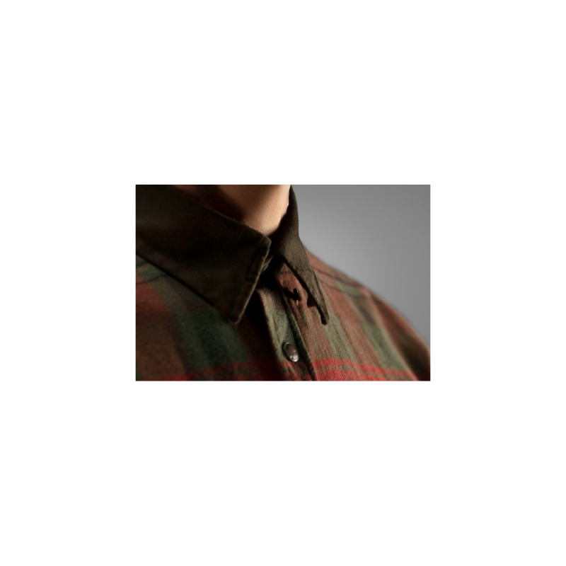 Parfaite pour la chasse comme pour d'autres activités de plein air, Pajala est une chemise pressionnée en flanelle à carreaux, dotée de renforts en micro-suède et de poches pratiques.