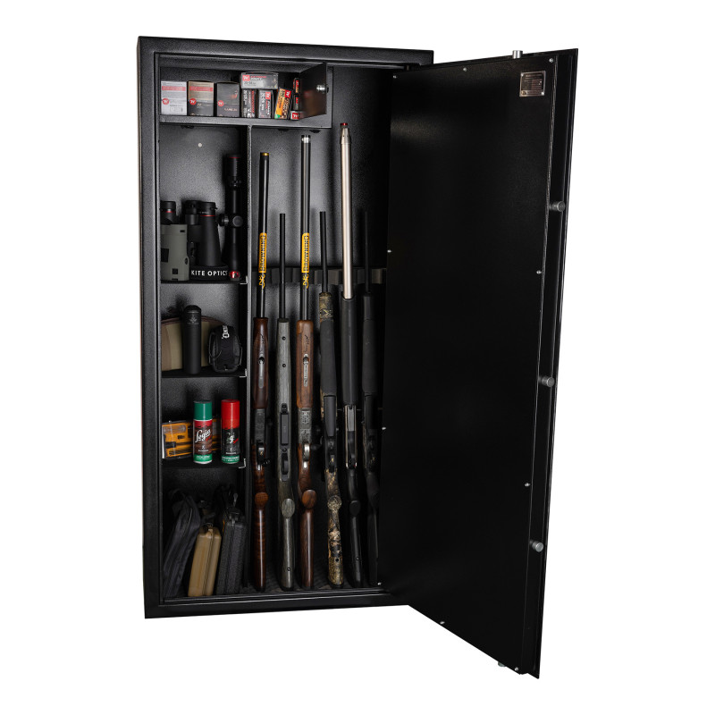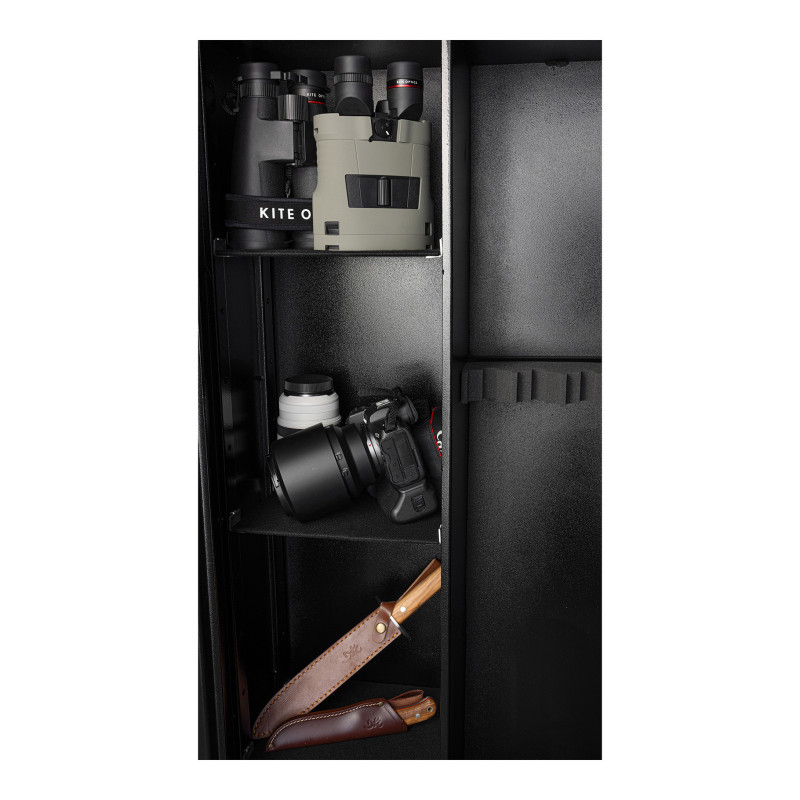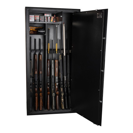 Le coffre-fort Browning Forge peut accueillir jusqu’à 10 armes longues, selon leur configuration. Son agencement intérieur permet un rangement structuré et un accès facile à vos équipements.