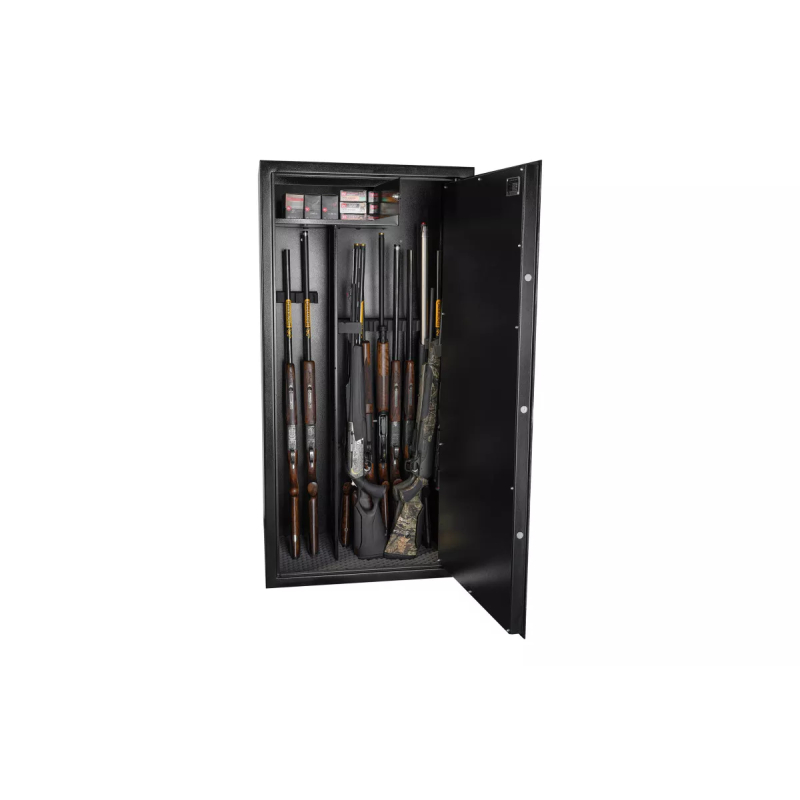 Le coffre-fort Browning Forge peut accueillir jusqu’à 13 armes longues, selon leur configuration. Son aménagement intérieur permet un rangement structuré et un accès facile à vos équipements.