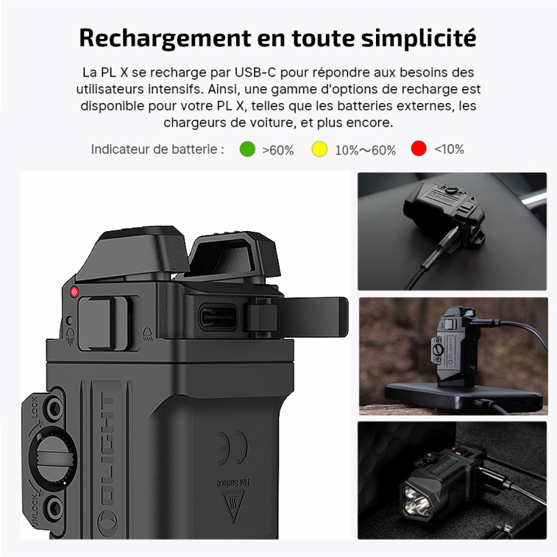 Gardez votre PL X chargée où que votre mission vous emmène - chargez via le port USB-C d'un véhicule, une batterie externe sur le terrain ou à partir de n'importe quel câble USB-C standard à la maison.