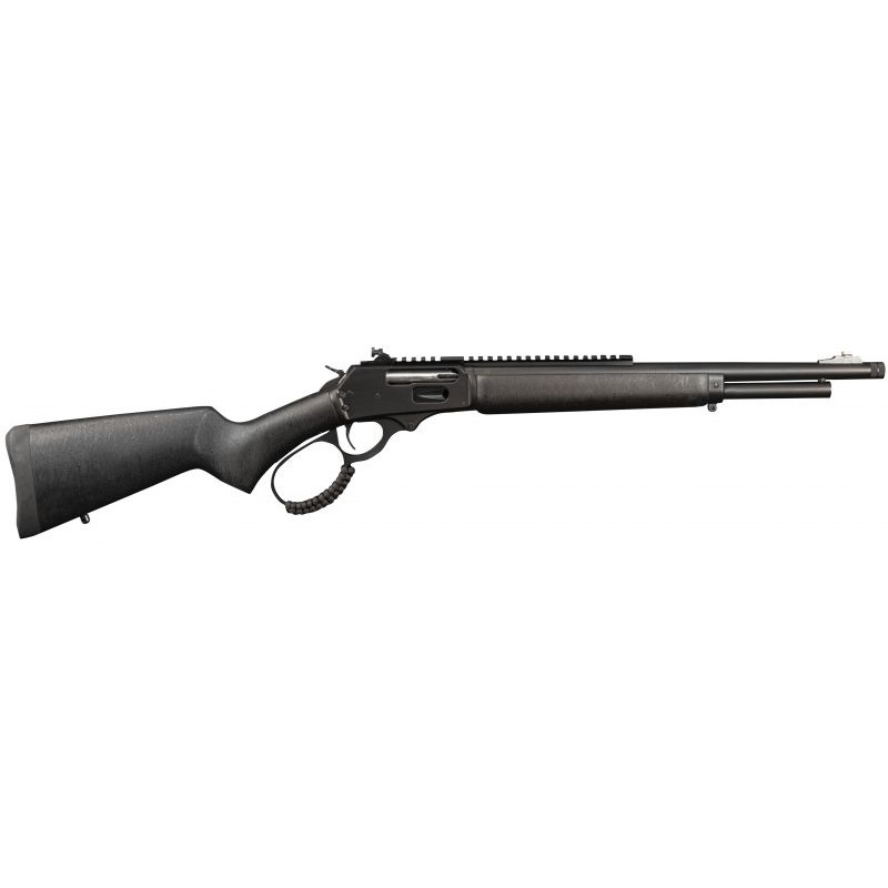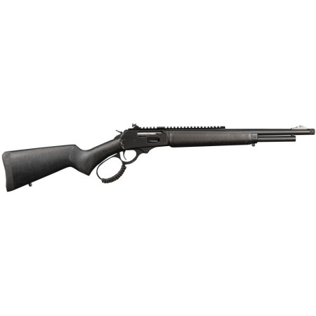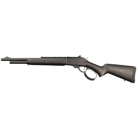Chaque composant métallique bénéficie d'un traitement Cerakote noir offrant une protection supérieure et une durabilité exceptionnelle. Cette carabine à levier de sous-garde Big Loop avec lanière de cuir est équipée d'un rail Picatinny en aluminium permettant l'installation d'optiques diverses ou d'un point rouge.