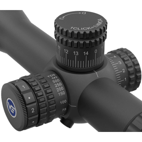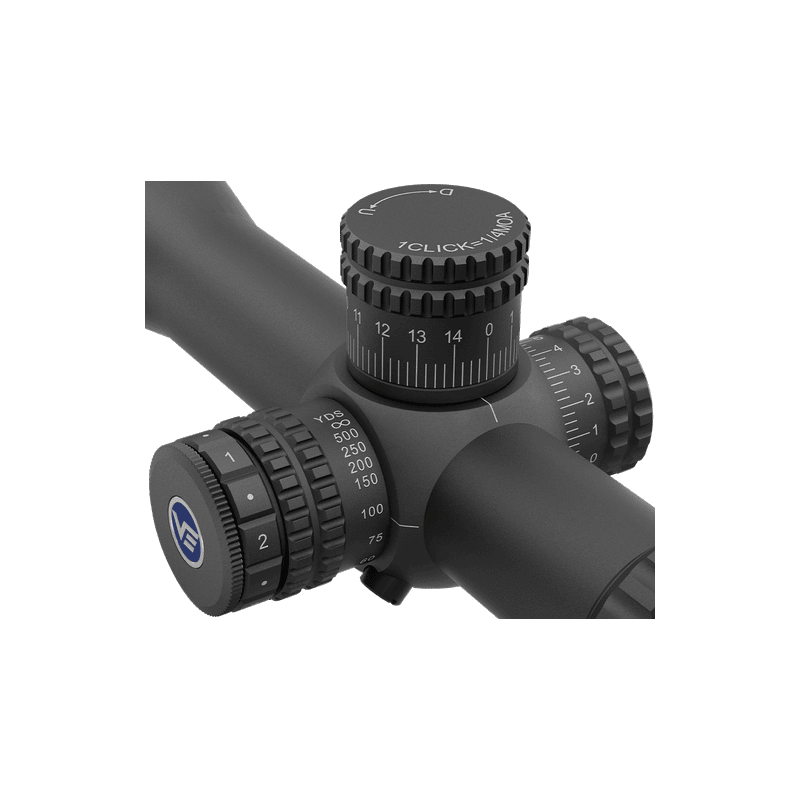 Le réticule VE-RDF en premier plan focal (FFP) évolue avec le grossissement, garantissant des corrections précises et constantes quelle que soit la puissance utilisée. Cela facilite l’estimation des distances et les ajustements en conditions réelles.