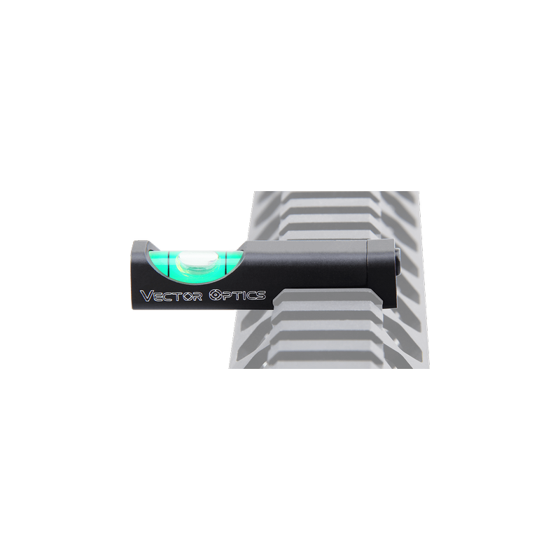 Le niveau à bulle Vector Optics est conçu pour être facilement visible sans gêner la visée. La bulle est lisible en un coup d’œil, permettant de corriger l’inclinaison immédiatement avant le tir.