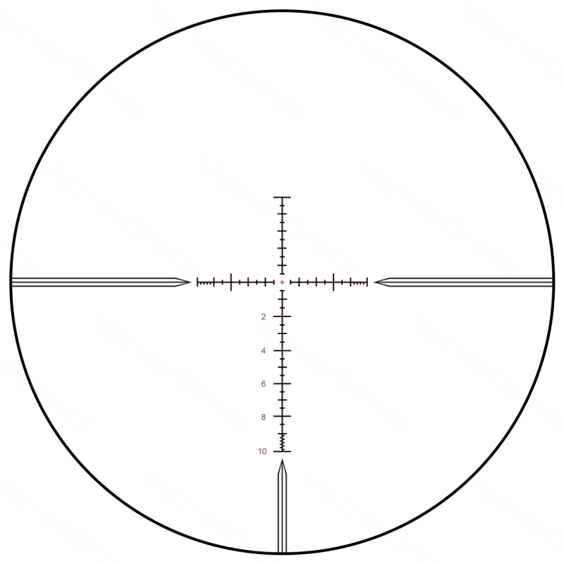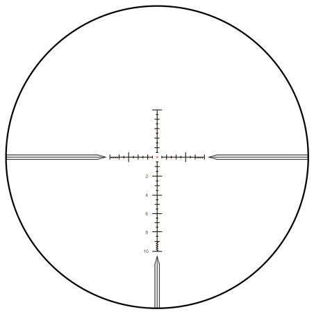 La lunette Vector Optics Tauron est équipée du réticule MPX1, conçu pour offrir un excellent équilibre entre précision et rapidité de lecture. Ce réticule permet un alignement clair et efficace, facilitant la prise de visée et les corrections.