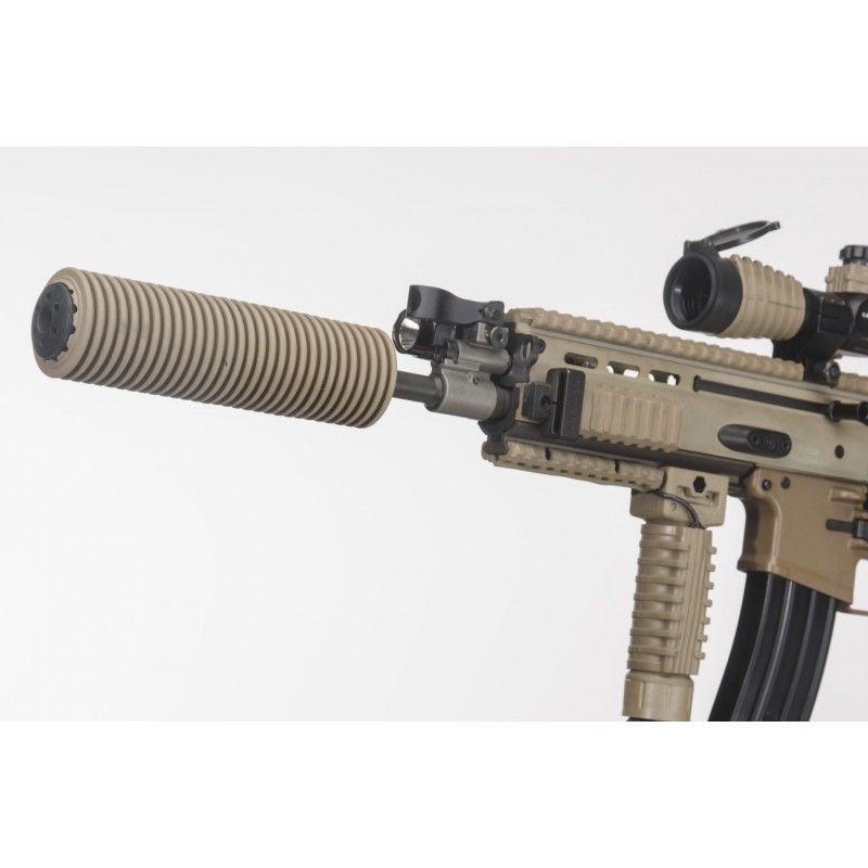 Le manchon de réducteur de son Manta dans sa nouvelle version V2 est conçu pour s'adapter aux réducteurs de 1,5" de diamètre (3.8 cm), ce qui couvre la plupart des réducteurs de son .223, .300, .308, 5,56 et 7,62.
