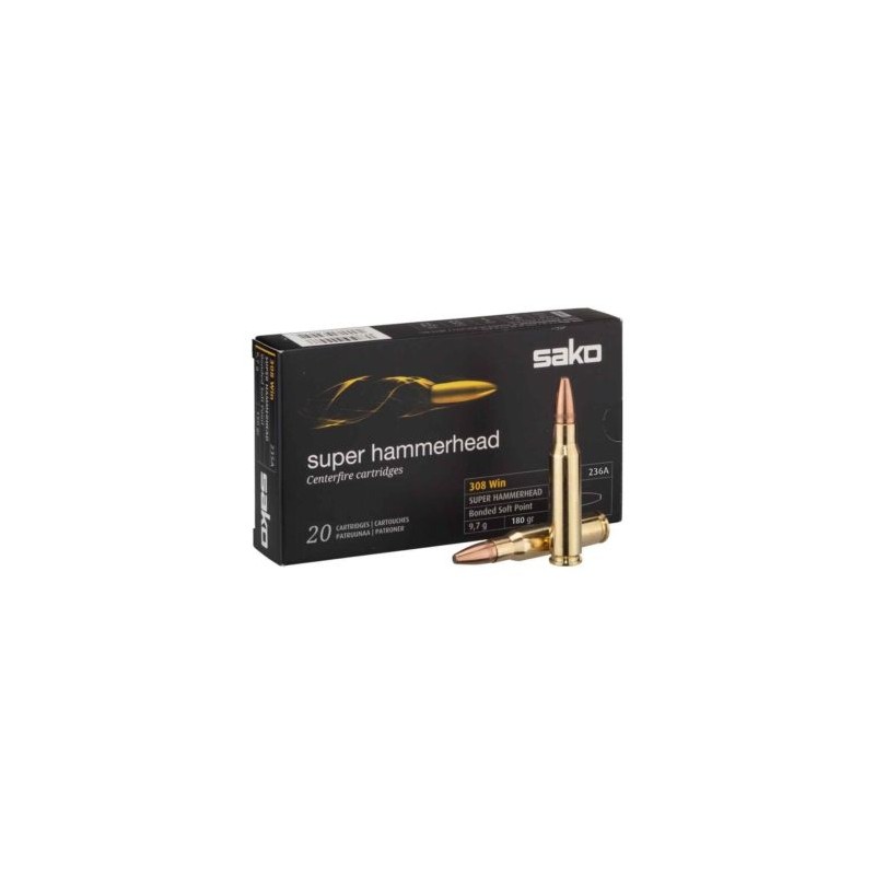 Les Sako 308 Win Super Hammerhead 180 gr sont livrées en boîtes de 20 cartouches.