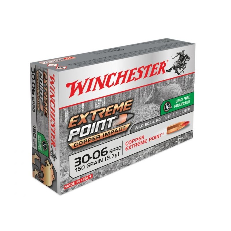 Cartouches à balle Winchester Copper Impact Extreme Point, nouvelles cartouches sans plombs, de calibre 30-06, 100% cuivre, boîtes de 20 cartouches.