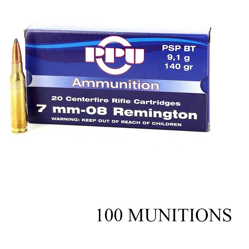 MUNITIONS PARTIZAN CALIBRE 7-08 REM PSP BT 140GR - 9.1G x100