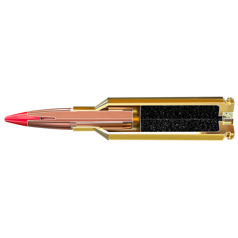 Balle monolithique en cuivre assurant une expansion contrôlée et une pénétration optimale.