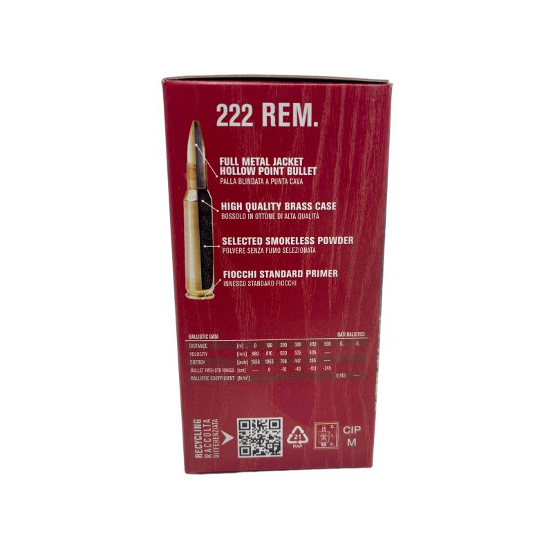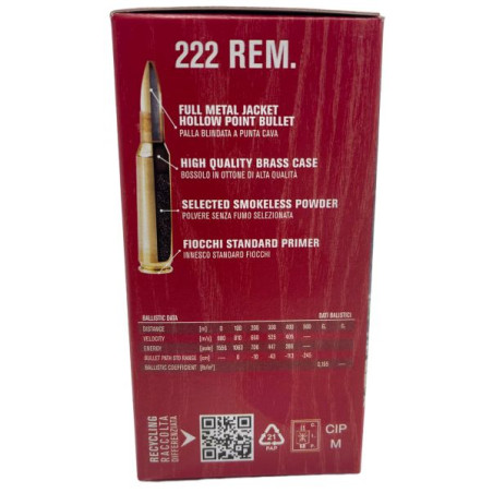 Ces cartouches à balle Fiocchi 222 Rem FMJHP 50 sont conditionnées par boîte de 50.