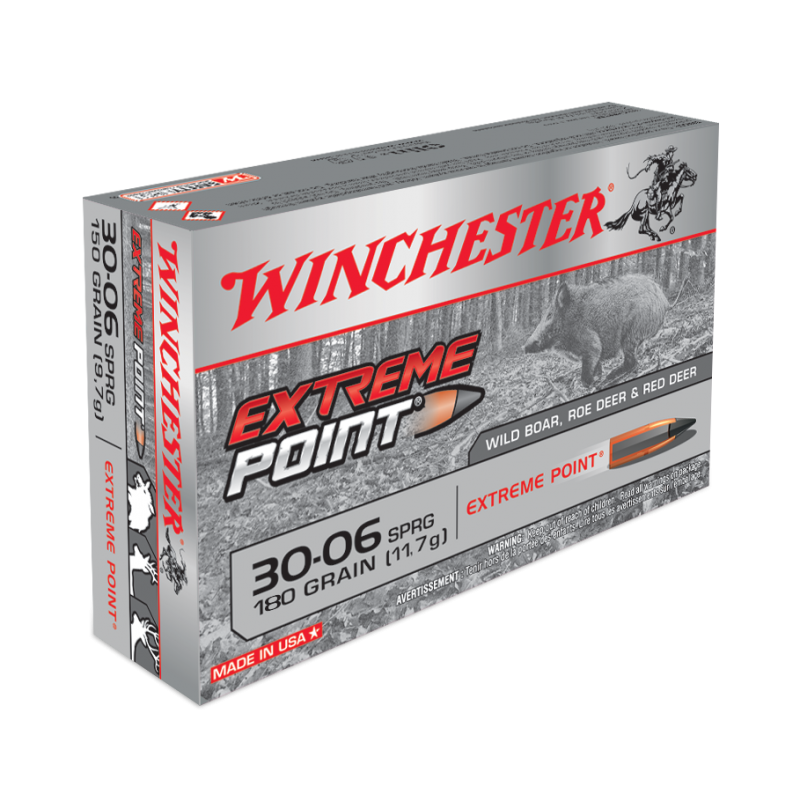 Les cartouches à balle Winchester Extreme Point 30-06, existent désormais en 180gr, comme les modèles existants, l'utilisation de la quasi totalité de sa surface frontale permet d'offrir un excellent coefficient balistique, allié à une vitesse initiale très élevée, elle donne la possibilité de préserver une vitesse résiduelle lors de tirs longues distances.
