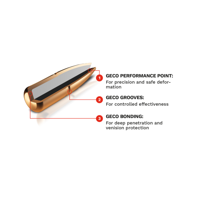 Les utilisateurs associent à la cartouche GECO PLUS les caractéristiques d'effet de profondeur et de préservation de la venaison, même lorsque le gibier est plus fort.