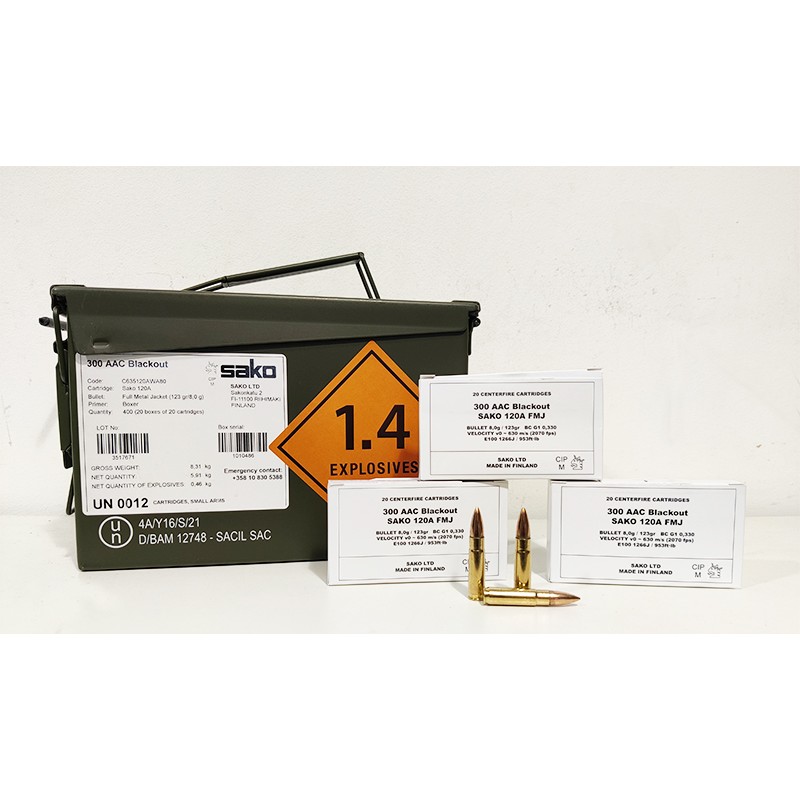Munitions SAKO 300 AAC blackout 123 grains FMJ Boite de 20