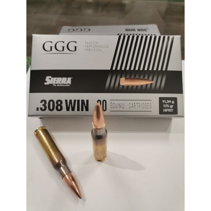 Cartouches GGG calibre 308 Win. à projectile de 175 grains HPBT Match sierra (vitesse : 810 m/s).