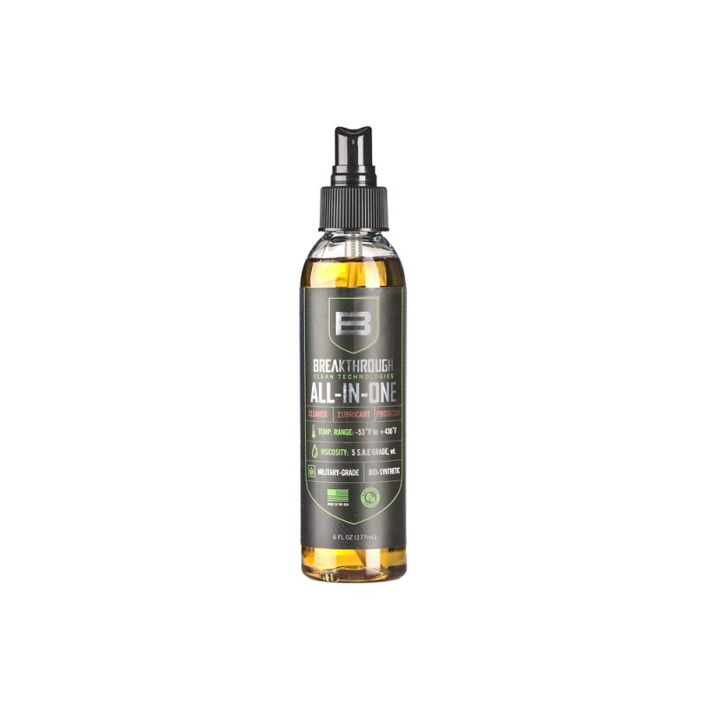 Le solvant qualité militaire Breakthrough® est inodore, non colorant, élimine totalement l’encrassement, et s'évapore complètement, ne laissant aucun résidu. Son pH est totalement neutre, ce qui n’engendre aucun dégât sur les parties bois, métal, plastique, polymère, cerakote ou water-transfert de votre arme à feu.  De plus, contrairement à des solvants classiques, le solvant qualité militaire Breakthrough possède un point d’ignition de 65° C et est donc considéré comme ininflammable. L’efficacité du solvant Breakthrough est inégalée, réduisant de façon drastique la durée du nettoyage tout en consommant moins de produit.