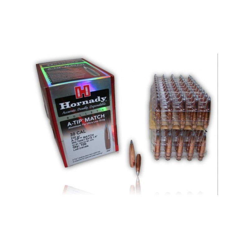 Des années de recherches et d’essais développés par le Groupe de Développement Balistique de Hornady, liées à des processus de fabrication et de contrôle avancés ont amené à la création d’une balle de match à très hautes performances et à très faible trainée. L’utilisation d’un poussoir de balle A-TIP™ est nécessaire pour positionner correctement la balle dans l’étui.
