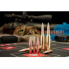 - Association parfaite de l’ogive, la longueur de la pointe et de la surface portante de la balle sur les rayures. L’arrière fuyant de la balle est optimisé pour chaque calibre.