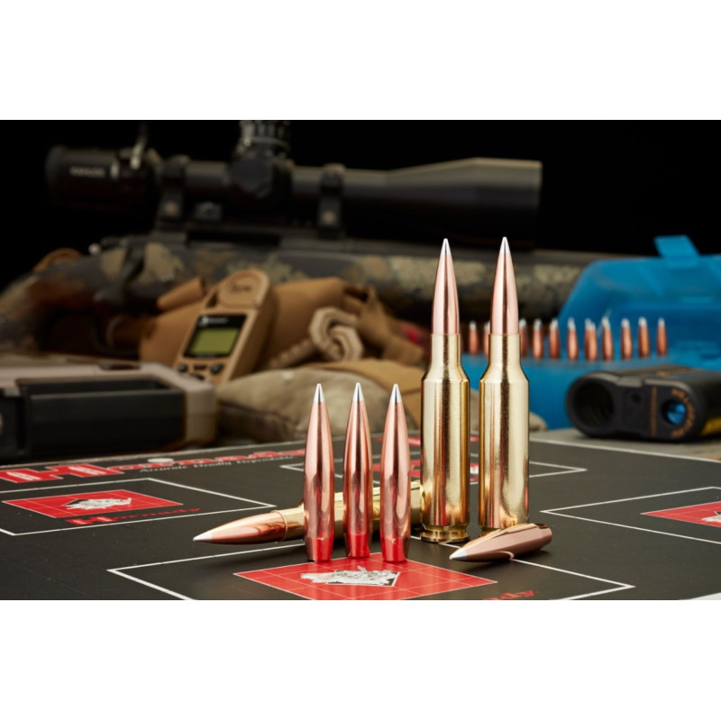 Des années de recherches et d’essais développés par le Groupe de Développement Balistique de Hornady, liées à des processus de fabrication et de contrôle avancés ont amené à la création d’une balle de match à très hautes performances et à très faible trainée. L’utilisation d’un poussoir de balle A-TIP™ est nécessaire pour positionner correctement la balle dans l’étui.