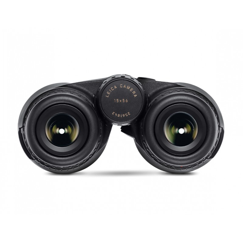 Jumelles Leica Geovid 15 x 56 R, courroie en néoprène, bouchon d’objectifs, bouchons oculaire, étui en Cordura, batterie.
