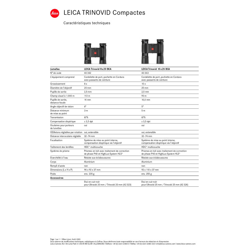 Les jumelles Leica Trinovid 8x20 BCA sont le choix parfait pour les utilisateurs exigeants recherchant une optique premium, fiable et performante, dans un format discret et élégant, adapté à toutes les situations d’observation.