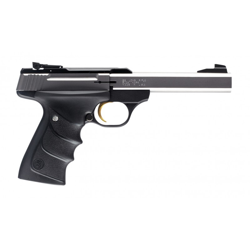 Le Browning Buck Mark standard inoxydable de calibre 22LR d'une capacité de 10 coups est d'une précision remarquable. En effet, il s'agit de la version avec un canon et culasse en acier inoxydable qui offre en plus de sa haute précision, un aspect plutôt singulier.