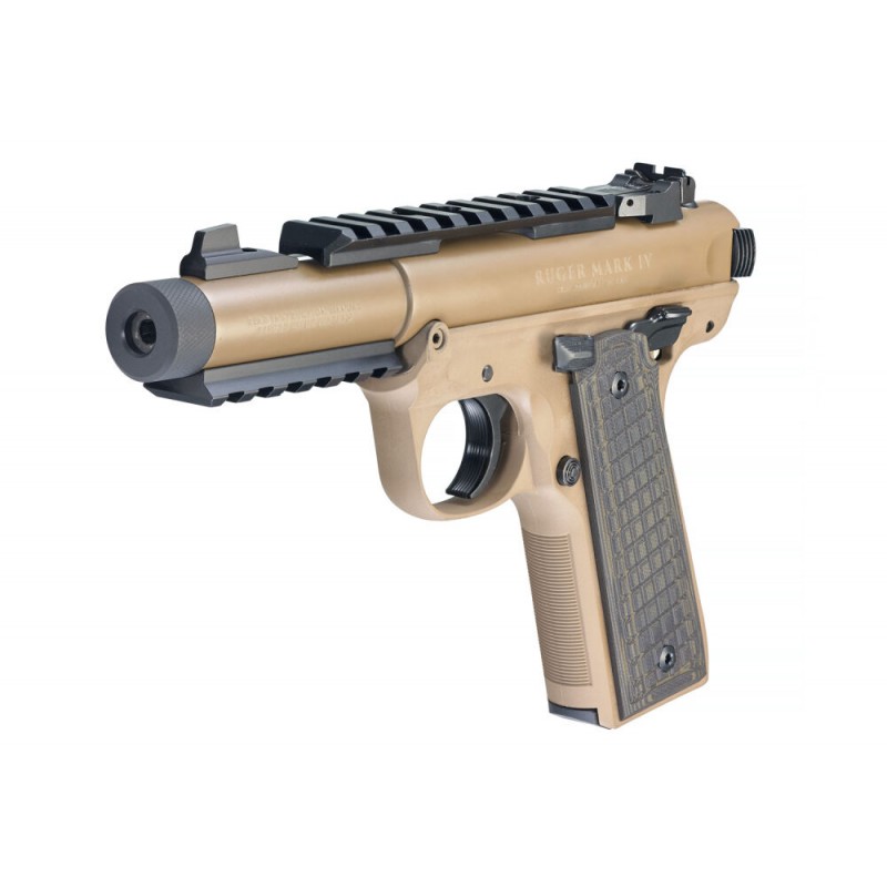 Le Ruger Mark IV 22/45 Tactical Cerakote Brown est un pistolet semi-automatique de haute qualité, conçu pour offrir une performance exceptionnelle et une facilité d'utilisation optimale. Fabriqué par Ruger, un nom de confiance dans le domaine des armes à feu, ce modèle est une évolution du célèbre Mark III, intégrant des améliorations notables en termes de design et de fonctionnalités.