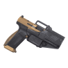 La carcasse en polymère haute résistance combine légèreté et robustesse, offrant une excellente maîtrise de l’arme. La poignée ergonomique et texturée assure une prise en main ferme et naturelle, même lors de tirs rapides ou en conditions exigeantes. L’équilibrage général du pistolet favorise un contrôle optimal du relèvement et une meilleure précision en enchaînement.