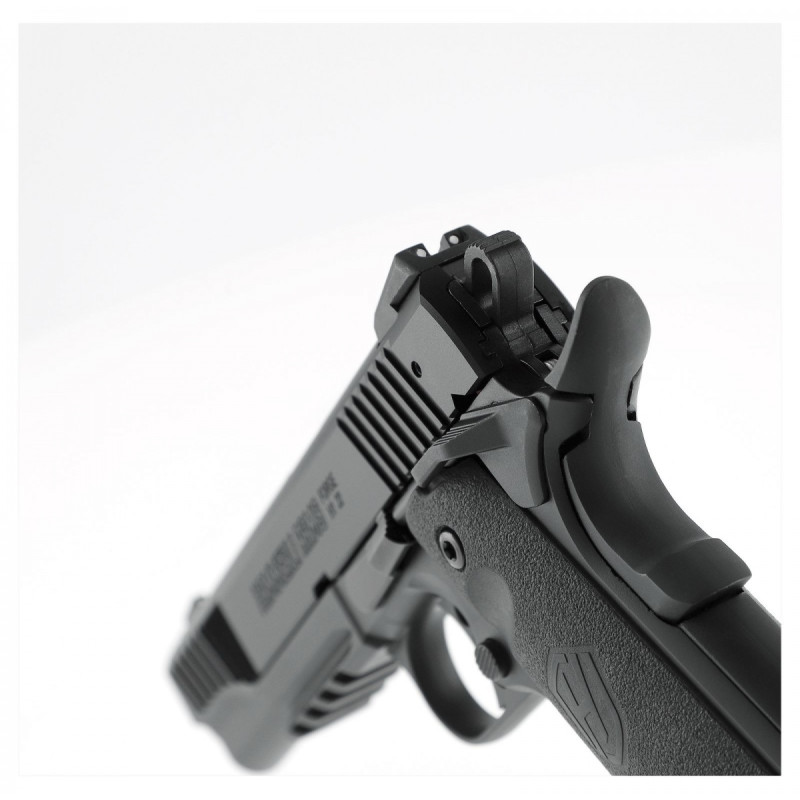 Le Pistolet HAMMERLI 1911 Forge H1 5" cal.22 Lr est une réplique moderne du mythique 1911, conçue pour offrir une expérience de tir optimale. Construit par HAMMELRI, il garantit précision et une excellente maniabilité. Son calibre .22 LR le rend parfait pour l'entraînement à prix réduit .