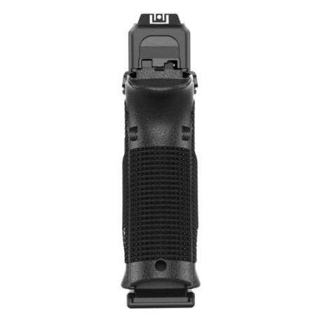 Le GLOCK Gen6 marque une évolution majeure avec une ergonomie entièrement repensée. Son grip RTF6 offre une adhérence exceptionnelle, même avec des gants ou en conditions humides. Le palm swell redessiné épouse naturellement la main pour un confort et un contrôle accrus, tandis que l’undercut optimisé permet une prise plus haute sous le pontet.