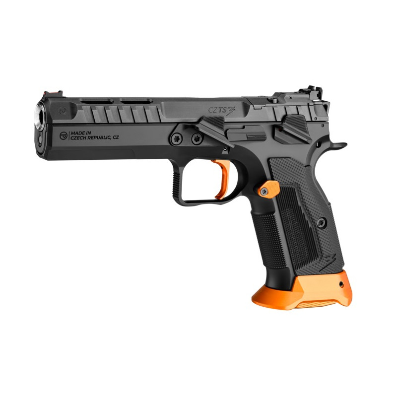 Le CZ TS 3 ORANGE est le modèle phare de la nouvelle série de pistolets de compétition CZ TS 3, conçu pour les divisions IPSC Optics et USPSA Limited Optics.