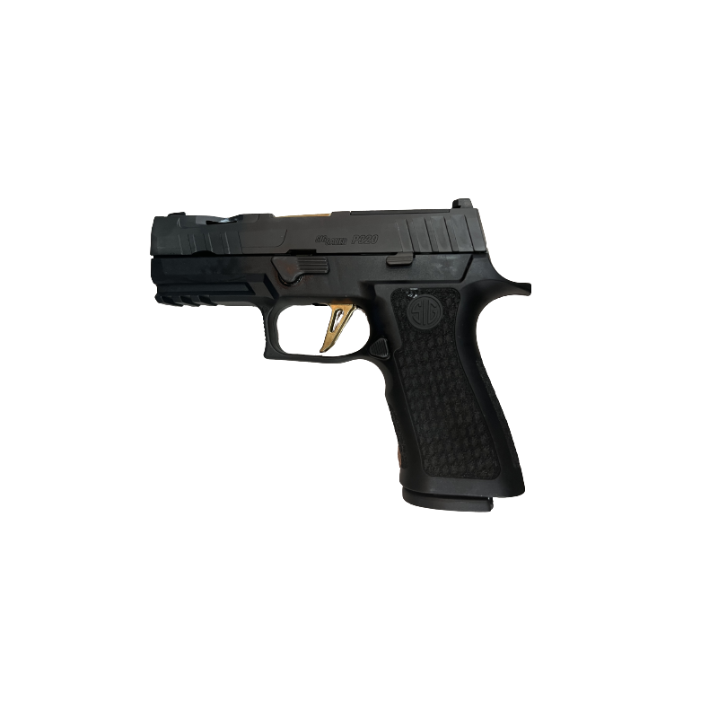 Découvrez la dernière création de SIG Custom Works, le P320 Compact X-serie en finition Spectre canon or.