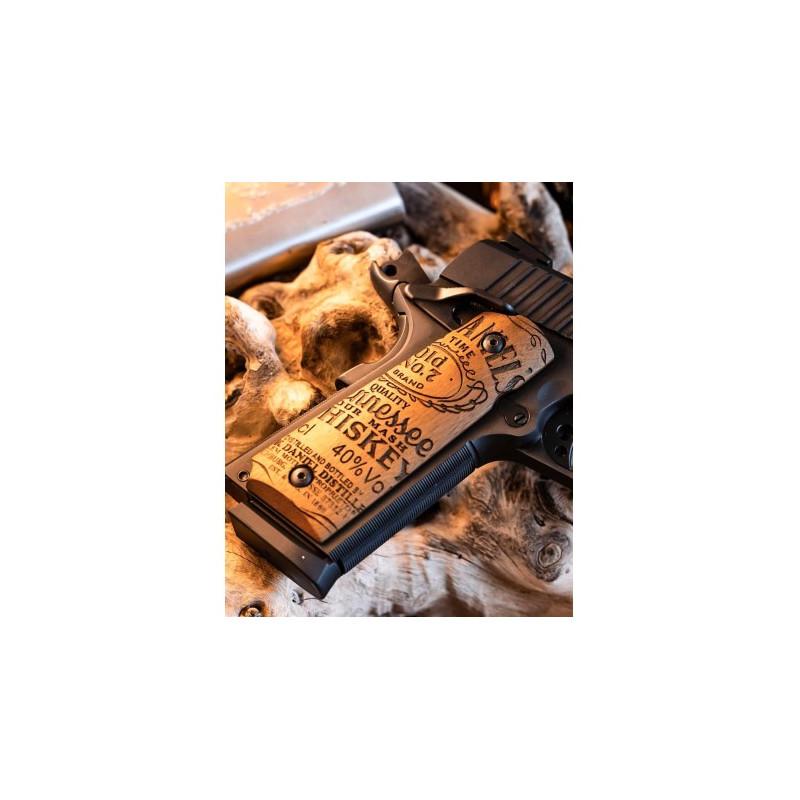 MBT présente une plaquette en bois pour Taurus PT1911 au design unique, inspirée du légendaire whiskey Jack Daniel’s. Fabriquée en noyer d’Amérique du Sud (Imbuia), chaque pièce est soigneusement usinée, poncée, huilée et gravée à la main. Résultat : une finition satinée, un toucher agréable et un style collector affirmé. Offrez à votre 1911 une allure authentique, mêlant élégance, caractère et passion pour la légende américaine.